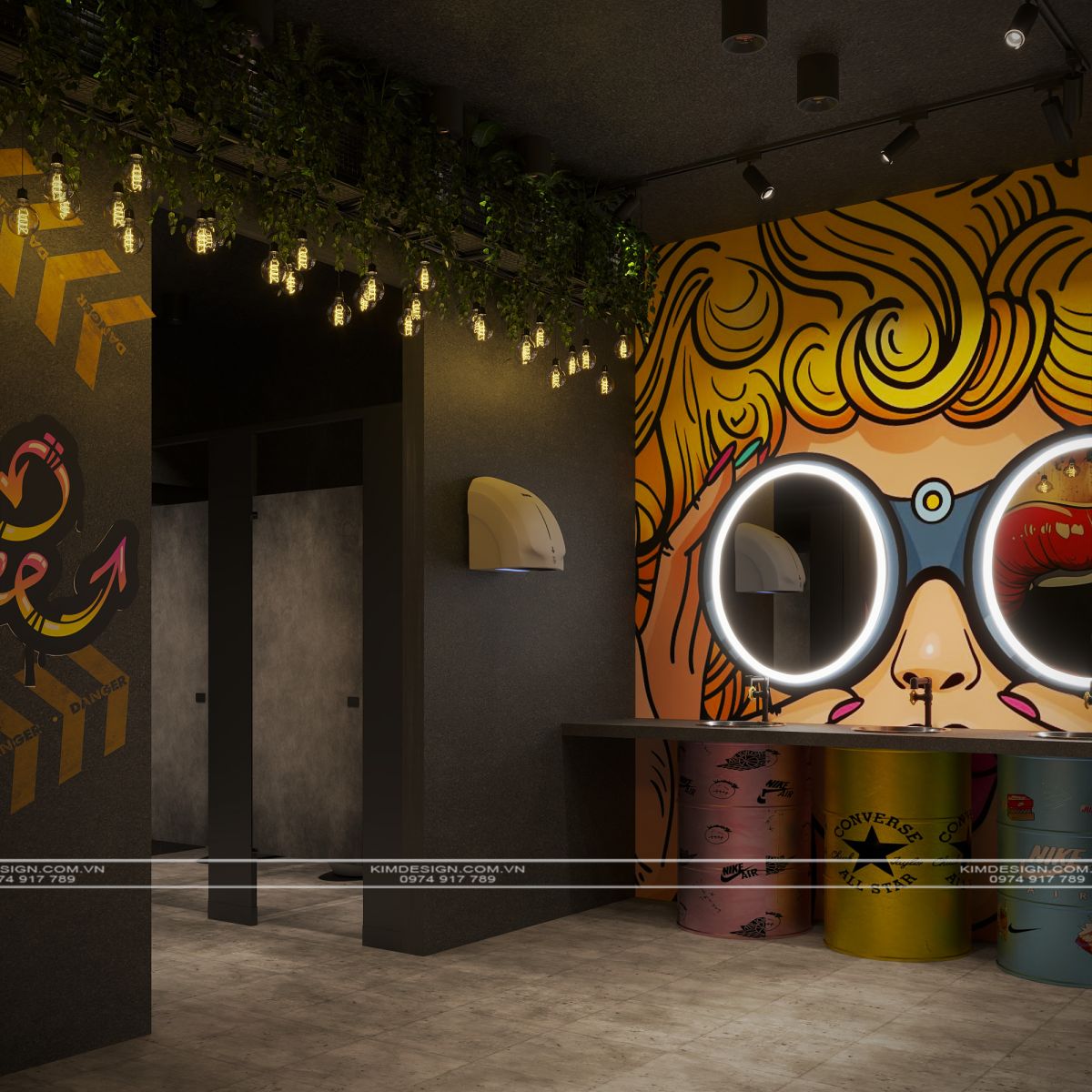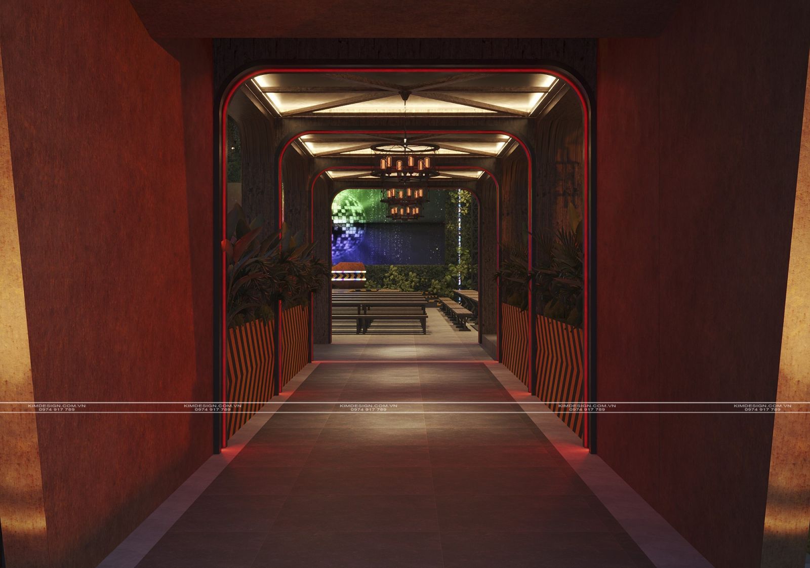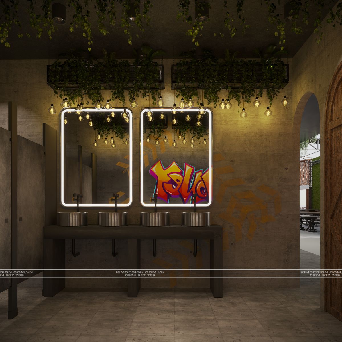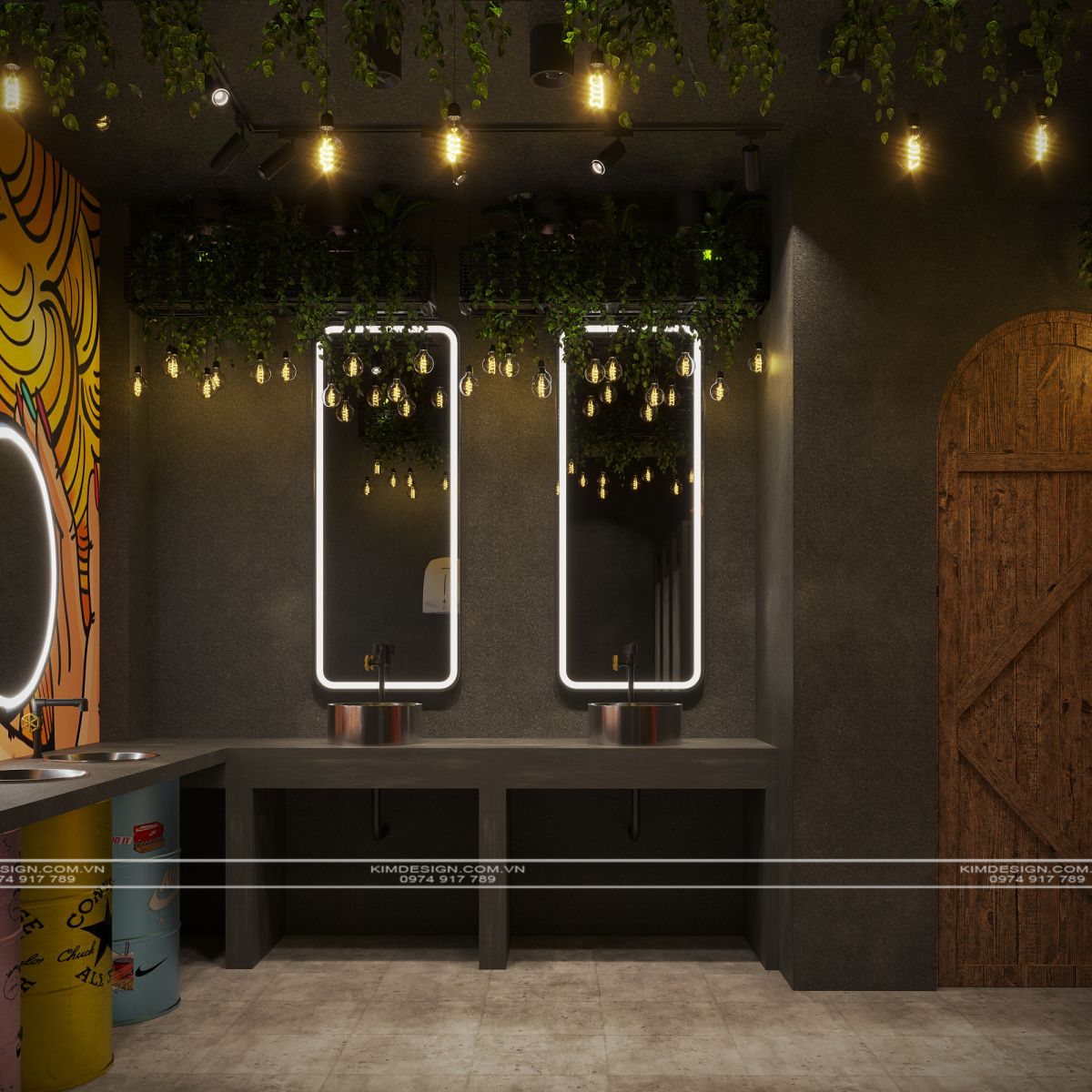 Nchung, mẫu thiết kế nhà hàng này đã thành công trong việc tạo ra một không gian đa chiều, nơi phong cách Industrial mạnh mẽ được nhẹ nhàng hóa một cách khéo léo bằng các yếu tố cây xanh và được thắp sáng rực rỡ bởi hiệu ứng neon hiện đại. Sự kết hợp giữa vật liệu thô mộc, bố cục mở linh hoạt, và hệ thống ánh sáng chuyên nghiệp đã biến nơi đây từ một không gian ẩm thực thông thường thành một điểm đến giải trí đích thực, giàu tính thẩm mỹ và cảm xúc. Thiết kế này không chỉ đáp ứng nhu cầu ăn uống mà còn kiến tạo nên một trải nghiệm thị giác và không khí lễ hội sôi động, khẳng định đây sẽ là một địa điểm thu hút và giữ chân khách hàng trong thời gian dài. Nếu bạn cũng muốn sở hữu cho mình một địa điểm kinh doanh hoành tráng như thế, liên hệ ngay cho Kim Design để được tư vấn miễn phí nhé!