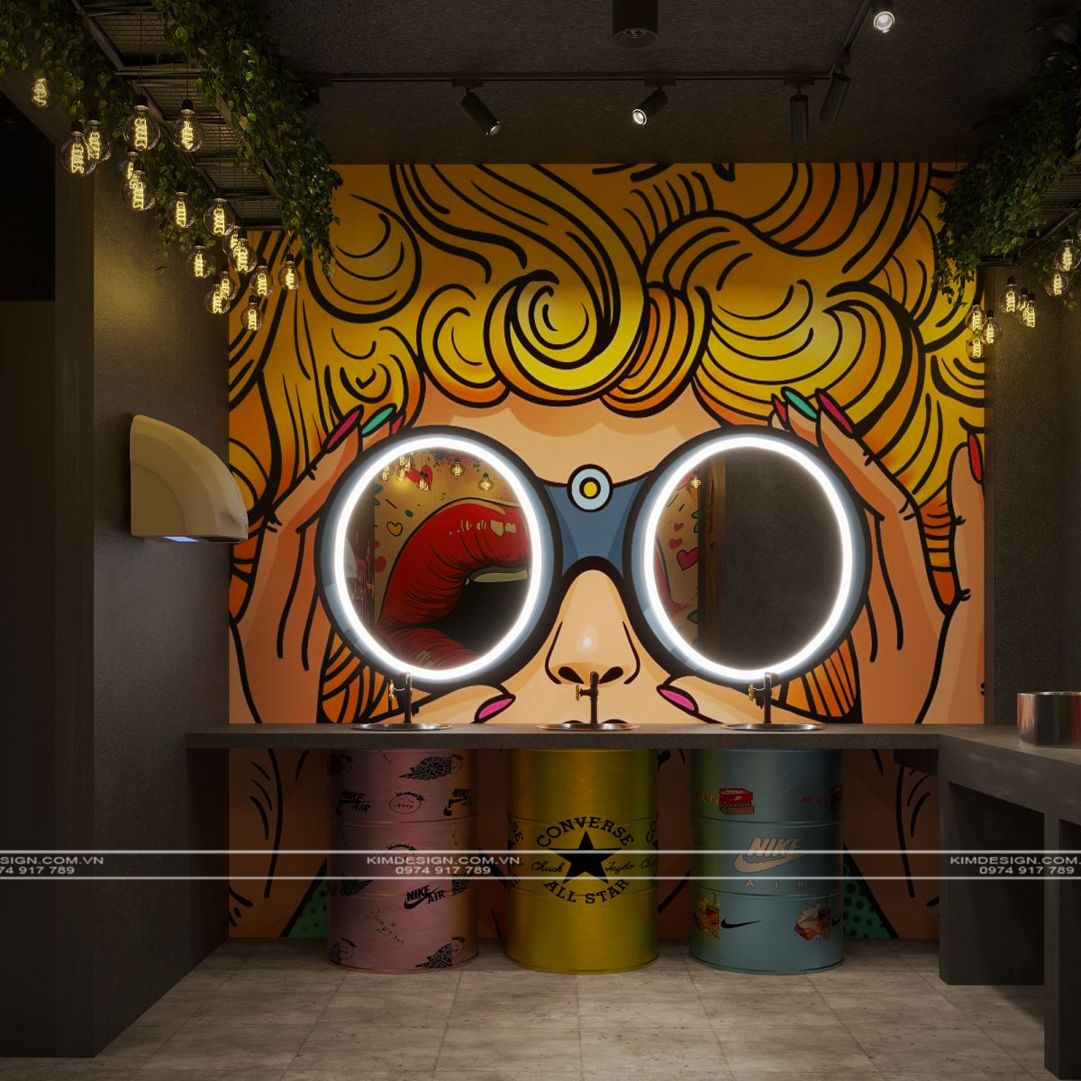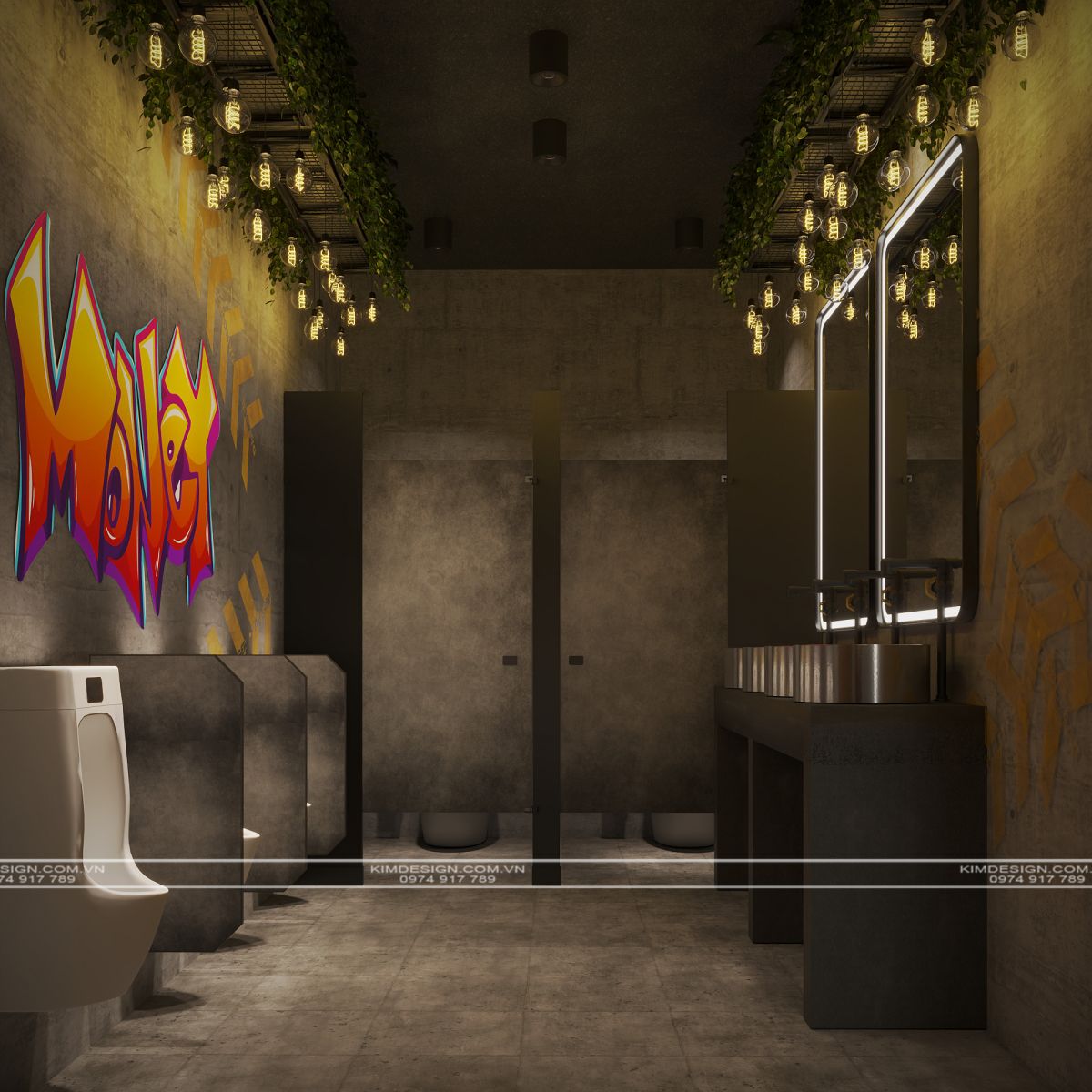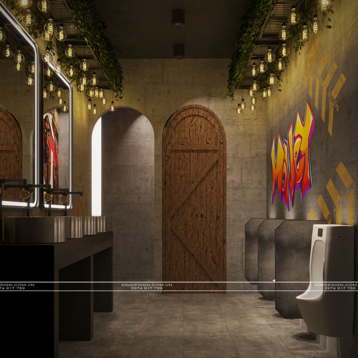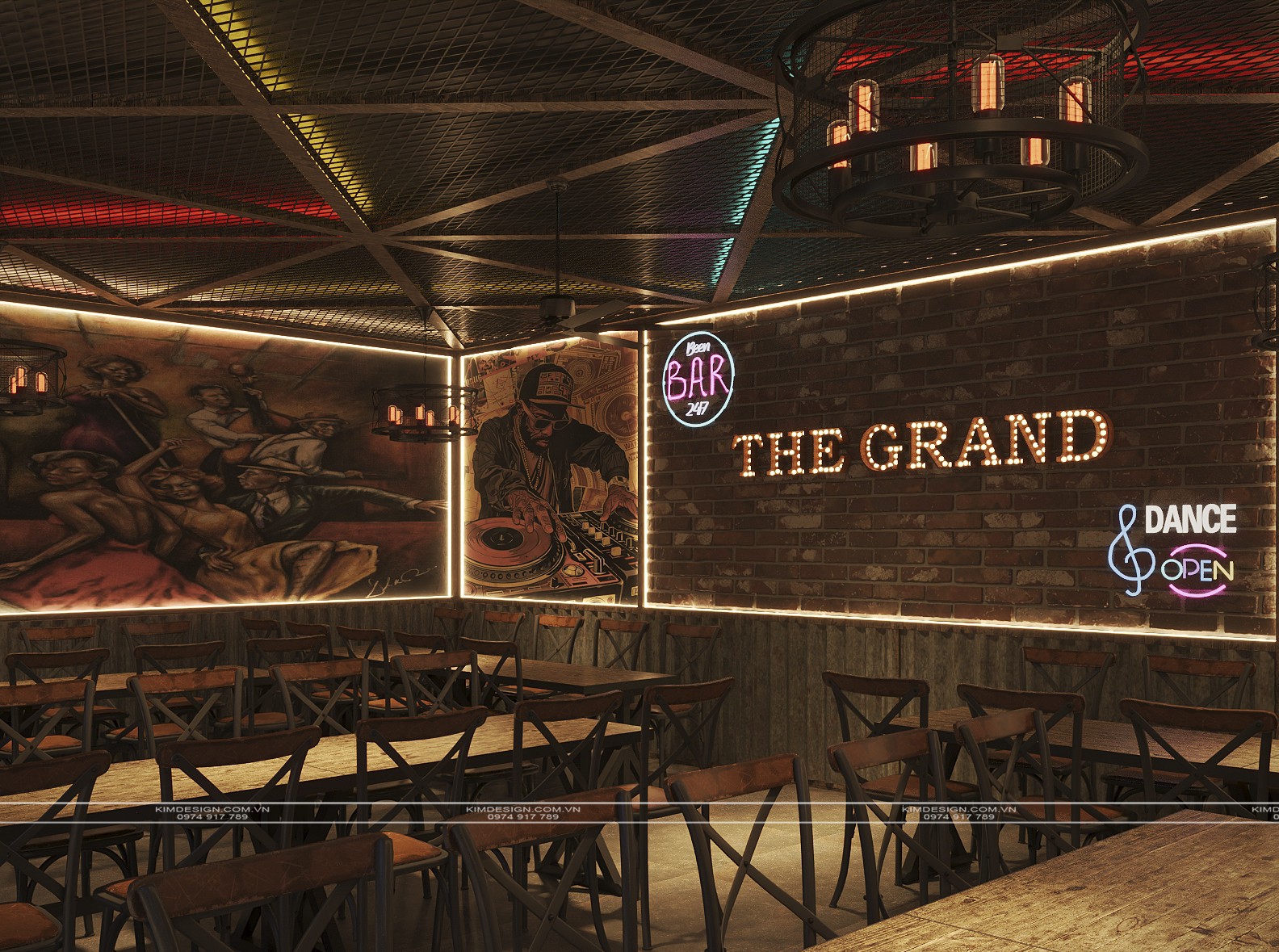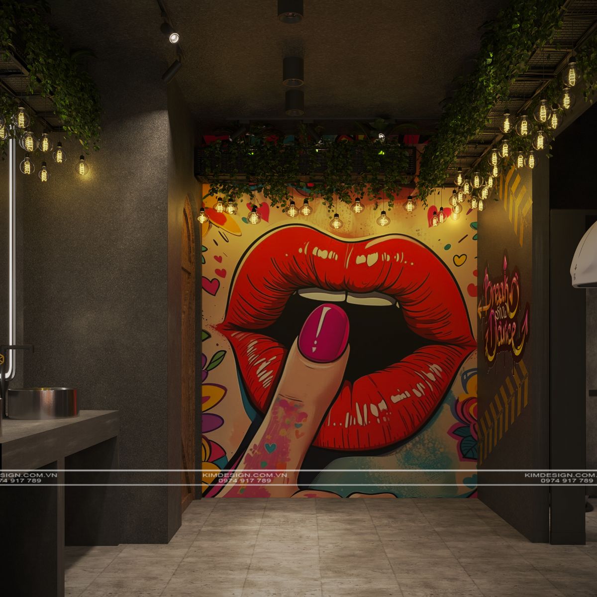 Nchung, mẫu thiết kế nhà hàng này đã thành công trong việc tạo ra một không gian đa chiều, nơi phong cách Industrial mạnh mẽ được nhẹ nhàng hóa một cách khéo léo bằng các yếu tố cây xanh và được thắp sáng rực rỡ bởi hiệu ứng neon hiện đại. Sự kết hợp giữa vật liệu thô mộc, bố cục mở linh hoạt, và hệ thống ánh sáng chuyên nghiệp đã biến nơi đây từ một không gian ẩm thực thông thường thành một điểm đến giải trí đích thực, giàu tính thẩm mỹ và cảm xúc. Thiết kế này không chỉ đáp ứng nhu cầu ăn uống mà còn kiến tạo nên một trải nghiệm thị giác và không khí lễ hội sôi động, khẳng định đây sẽ là một địa điểm thu hút và giữ chân khách hàng trong thời gian dài. Nếu bạn cũng muốn sở hữu cho mình một địa điểm kinh doanh hoành tráng như thế, liên hệ ngay cho Kim Design để được tư vấn miễn phí nhé!