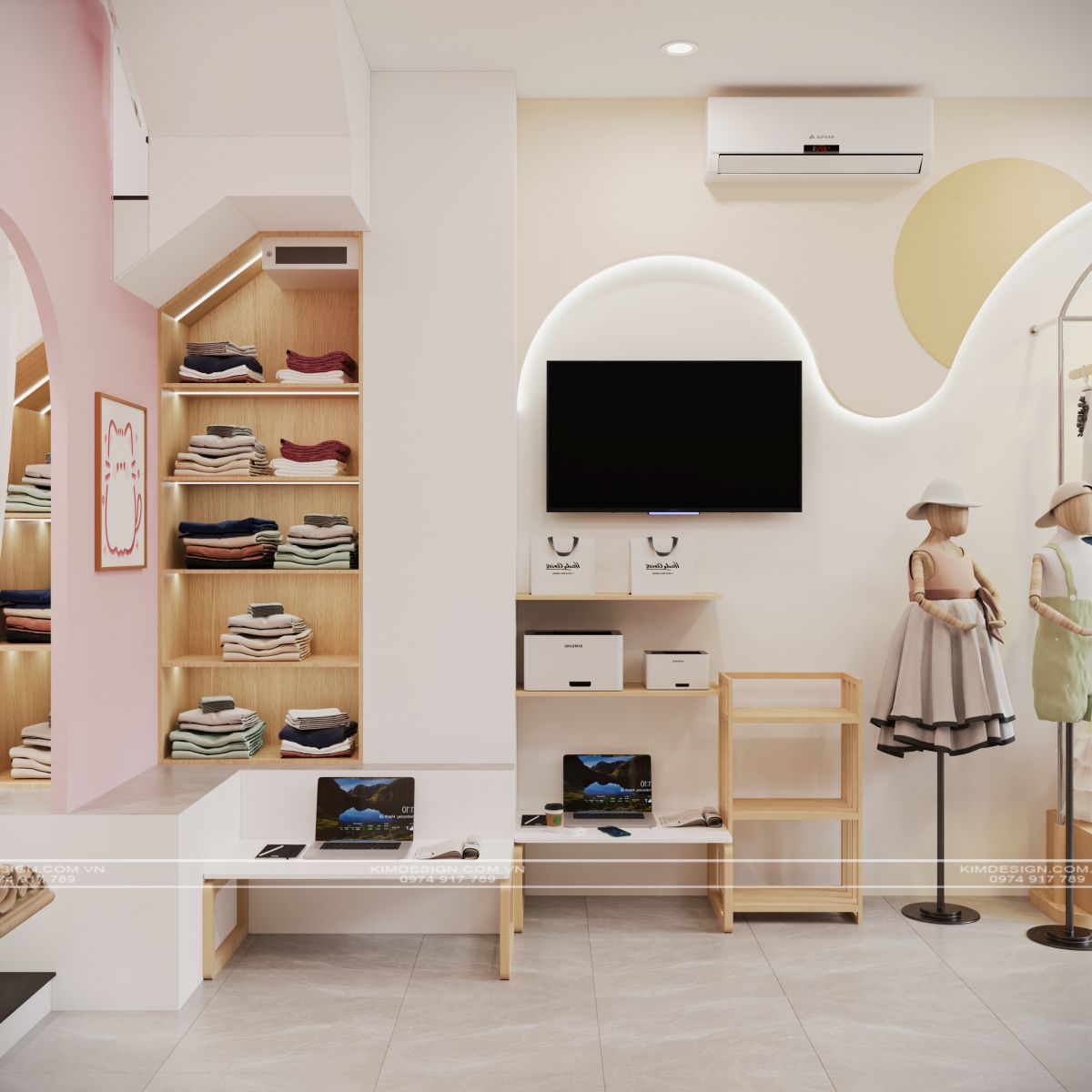 Từng chi tiết nhỏ nhất đều góp phần tạo nên một môi trường làm việc chuyên nghiệp nhưng vẫn đầy ngăn nắp. Không gian ấy không chỉ là nơi lưu trữ những bộ trang phục xinh xắn, mà còn là minh chứng cho tư duy thẩm mỹ tinh tế, nơi mỗi góc nhỏ đều được chăm chút để gửi gắm tình yêu và sự nâng niu dành cho những thiên thần nhỏ. Nhanh tay nhắn tin cho chúng tôi nếu muốn sở hữu một không gian shop thời trang trẻ em ấn tượng như thế nhé!