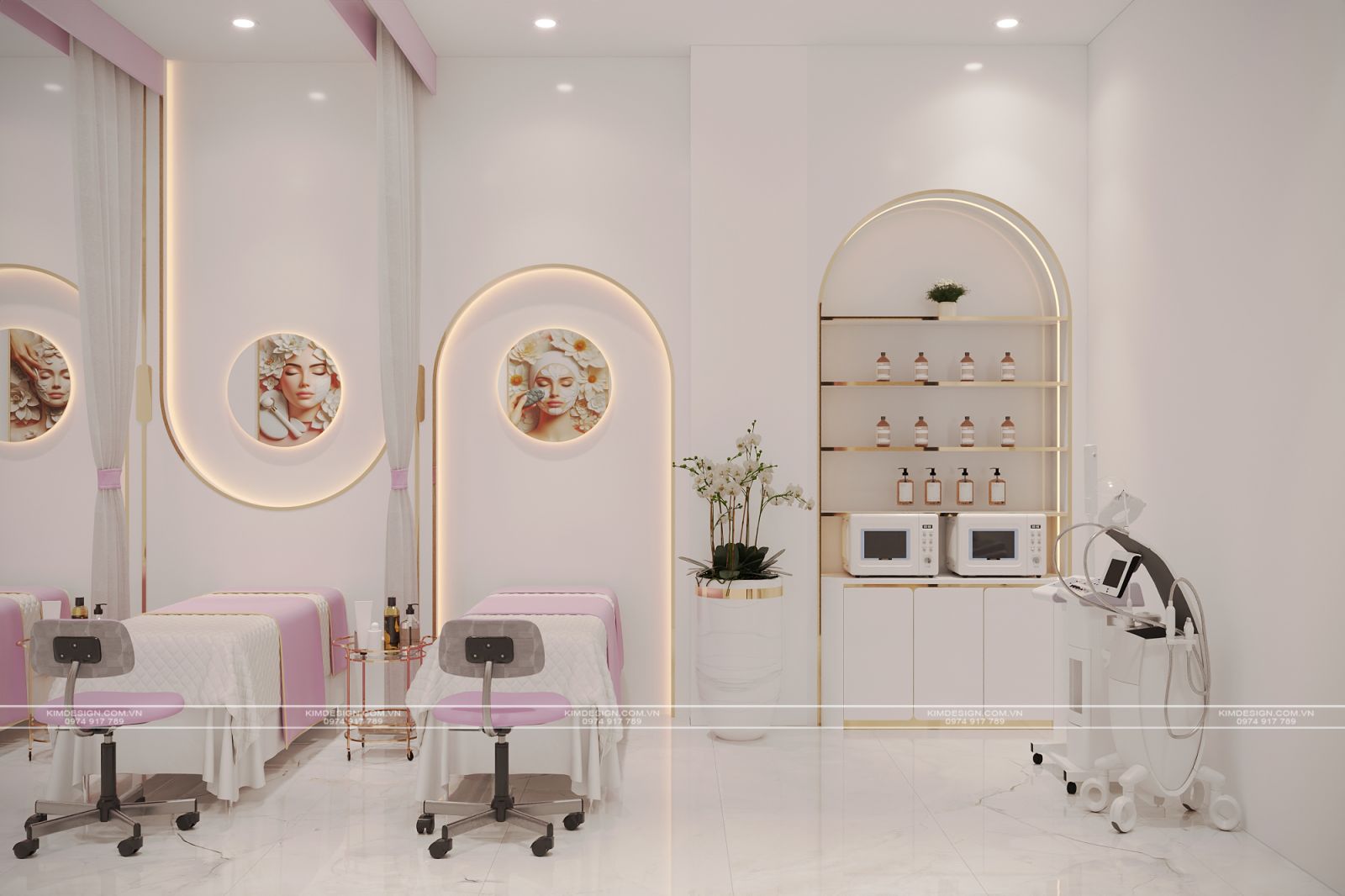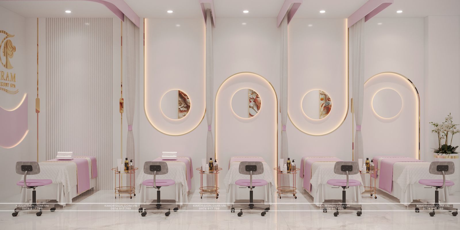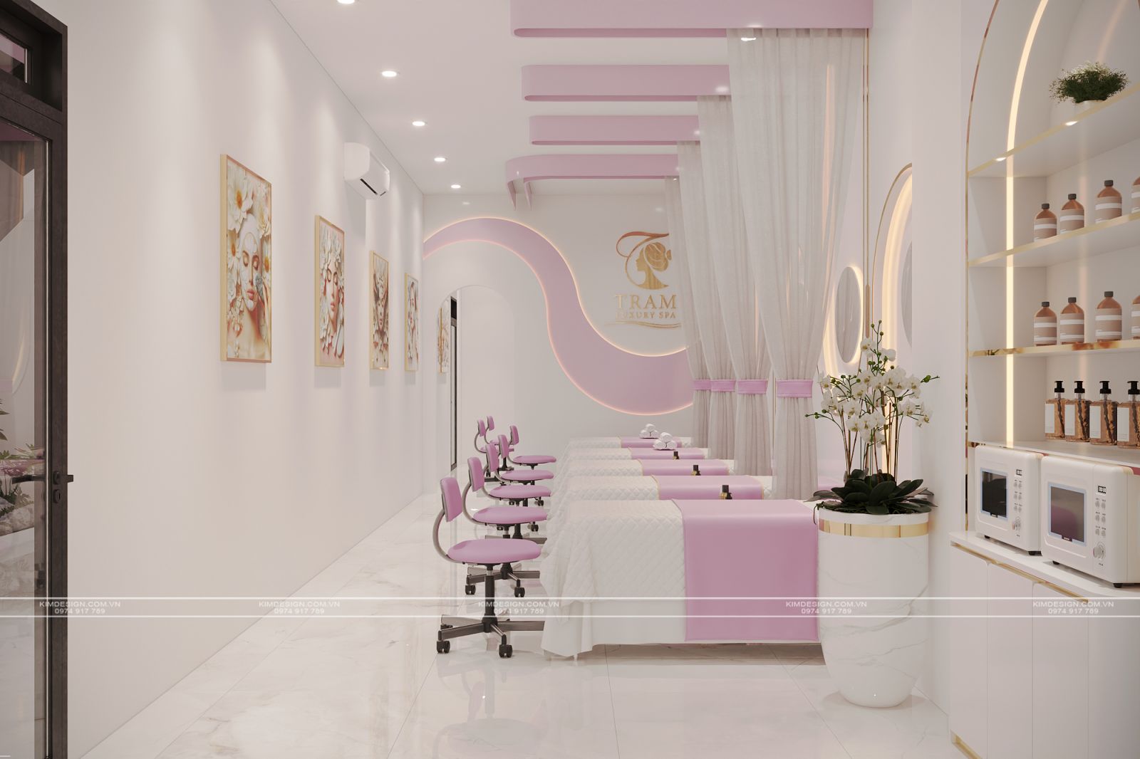 Trong thị trường làm đẹp đầy tính cạnh tranh hiện nay, không gian spa không đơn thuần chỉ là nơi cung cấp dịch vụ, mà còn là bộ mặt thương hiệu. Hiểu rõ điều đó, ý tưởng thiết kế Spa lần này, Kim Design thực hiện với mong muốn khơi nguồn vẻ đẹp thanh lịch, hiện đại và sự ngọt ngào, tạo nên một địa điểm thư giãn và làm đẹp đầy sang trọng và nữ tính.