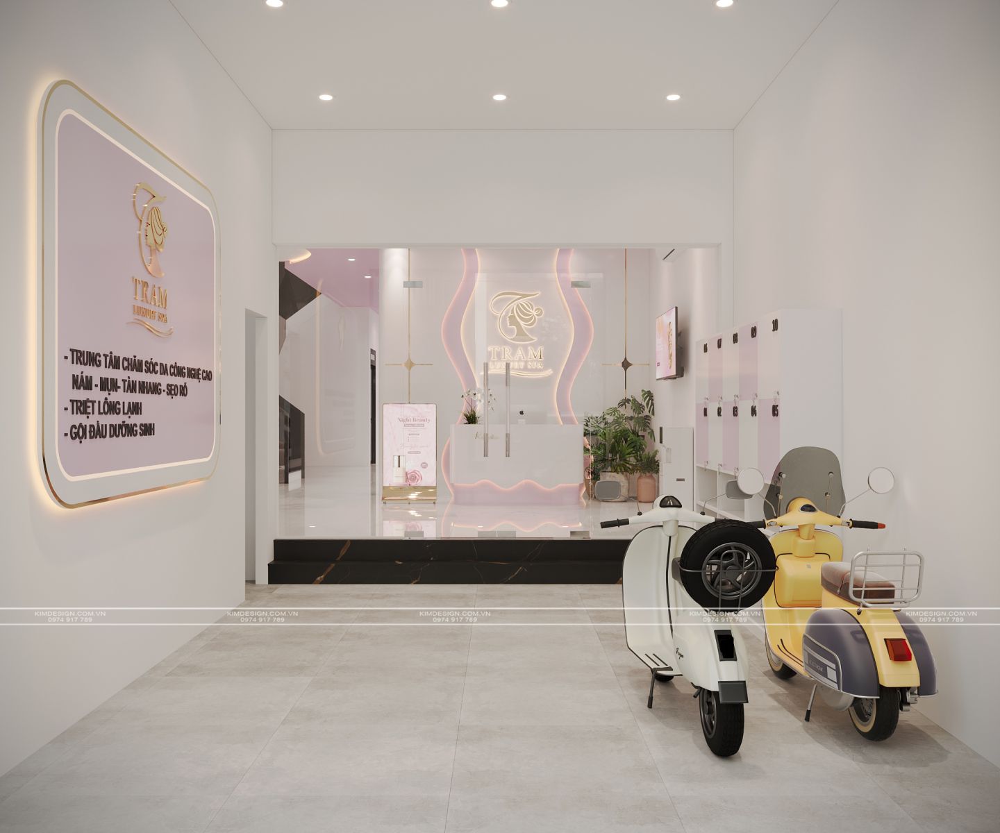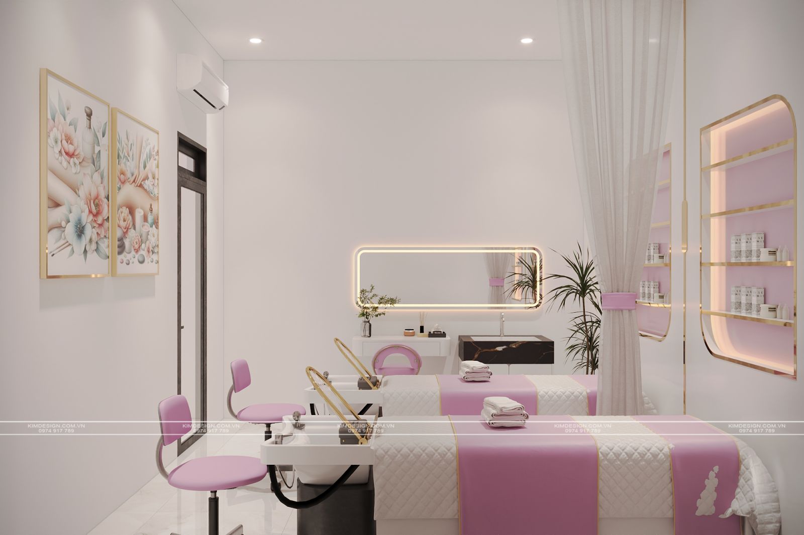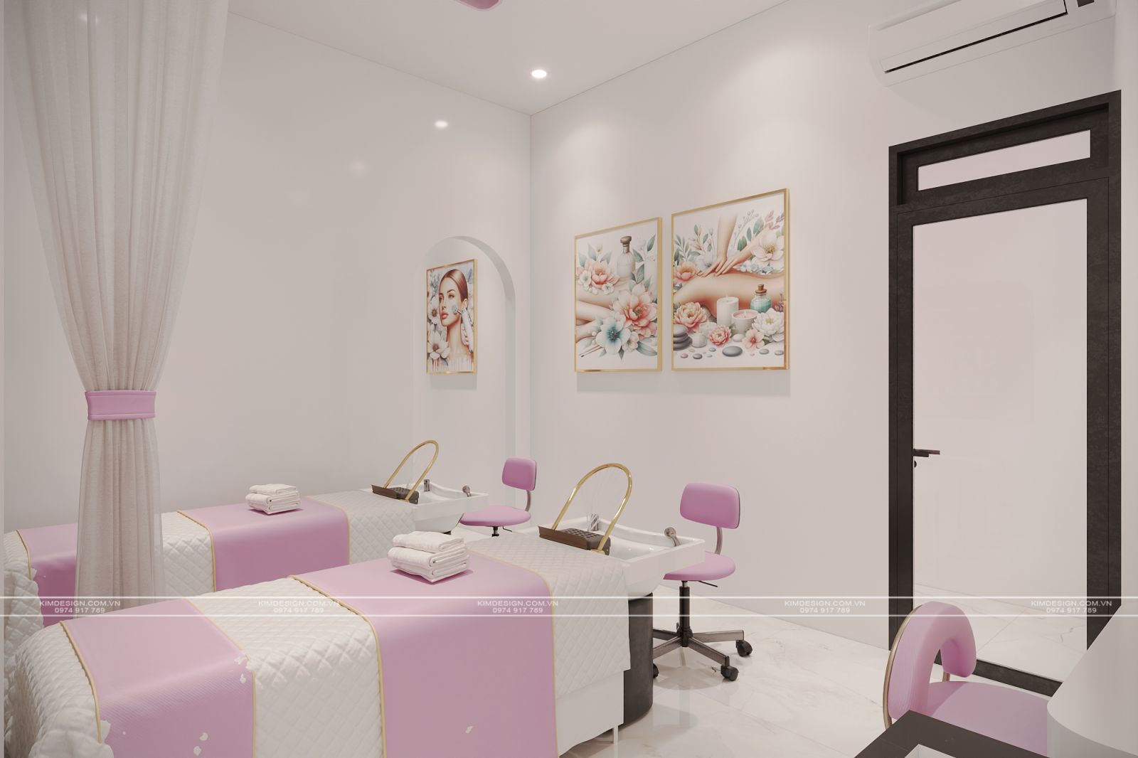 Trong thị trường làm đẹp đầy tính cạnh tranh hiện nay, không gian spa không đơn thuần chỉ là nơi cung cấp dịch vụ, mà còn là bộ mặt thương hiệu. Hiểu rõ điều đó, ý tưởng thiết kế Spa lần này, Kim Design thực hiện với mong muốn khơi nguồn vẻ đẹp thanh lịch, hiện đại và sự ngọt ngào, tạo nên một địa điểm thư giãn và làm đẹp đầy sang trọng và nữ tính.