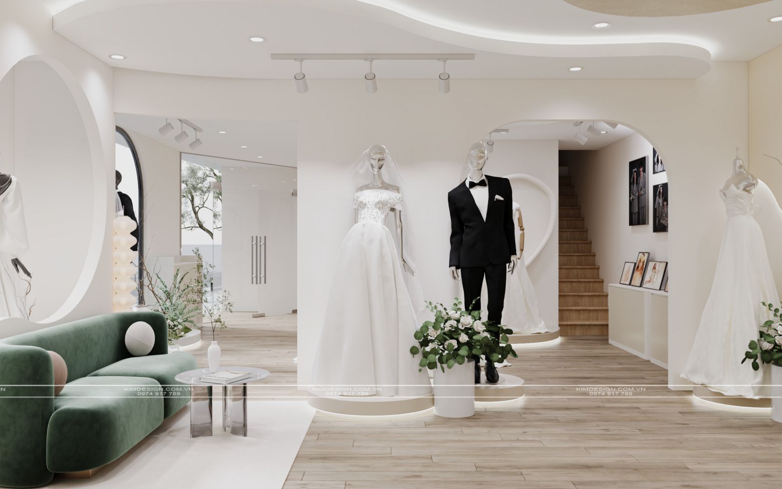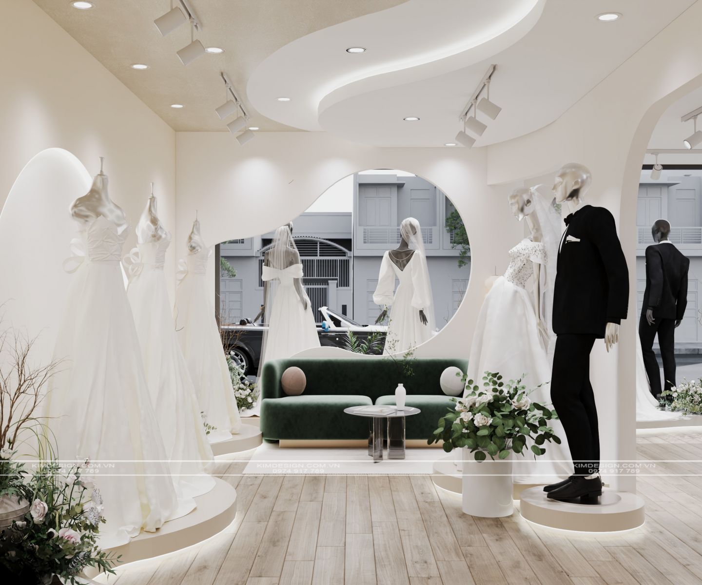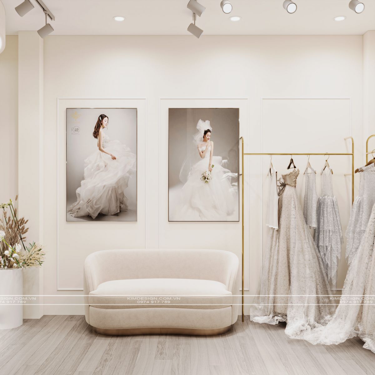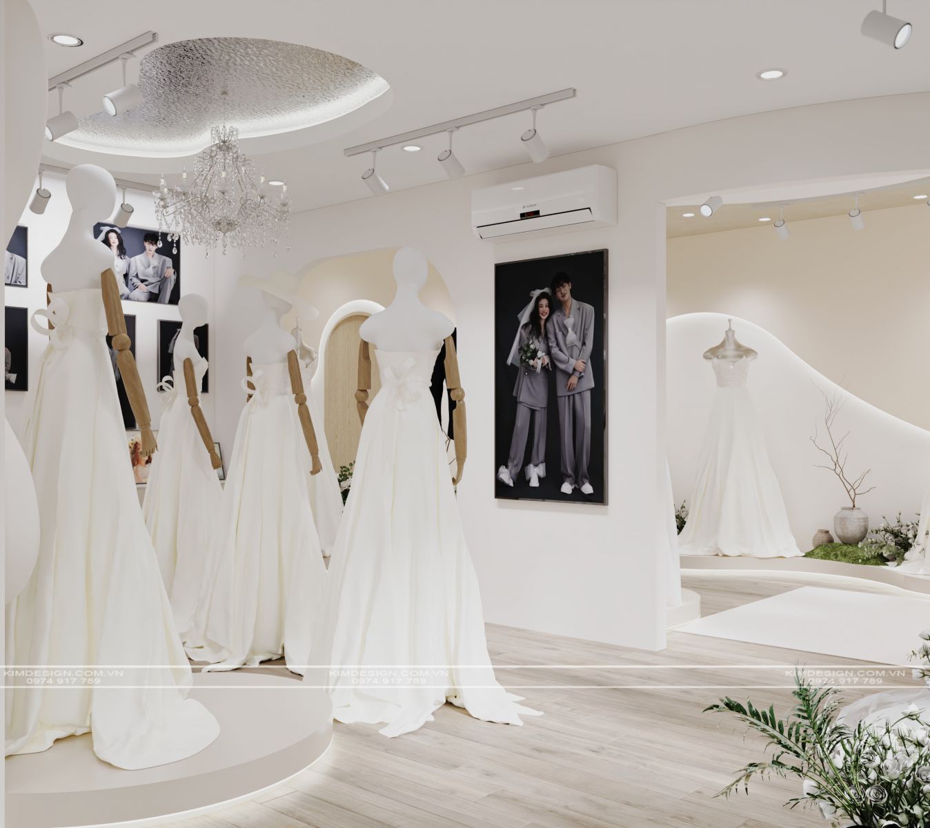 Một studio cưới không chỉ là nơi kinh doanh mà còn là nơi chắp cánh cho những câu chuyện tình yêu. Với một không gian được thiết kế tinh tế và đầy cảm hứng như vậy, mỗi cặp đôi khi đến đây sẽ không chỉ tìm thấy chiếc váy trong mơ hay những bức ảnh tuyệt đẹp, mà còn cảm nhận được sự trân trọng và niềm vui thực sự của hành trình chuẩn bị cho ngày trọng đại. Hãy để không gian này truyền cảm hứng, biến mọi khoảnh khắc của khách trở nên đáng nhớ và đầy ý nghĩa. Nhắn tin ngay cho Kim Design để sở hữu cho mình một thiết kế studio đồ cưới ấn tượng như thế này nhé!