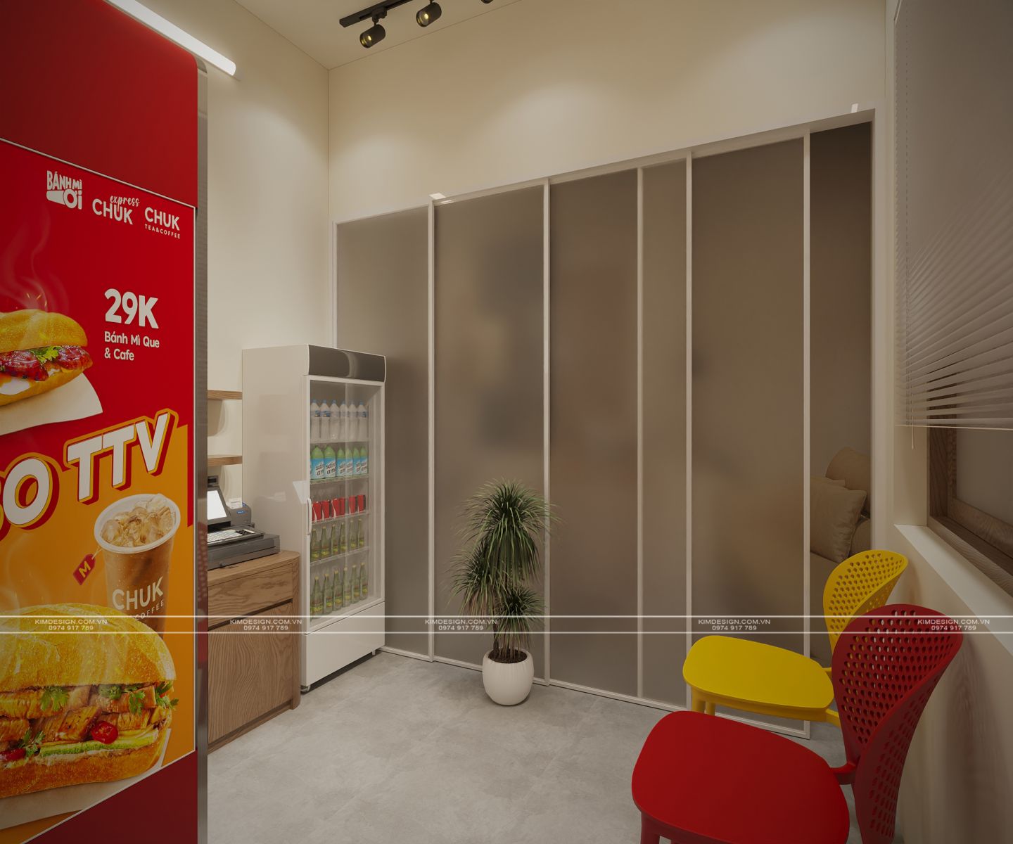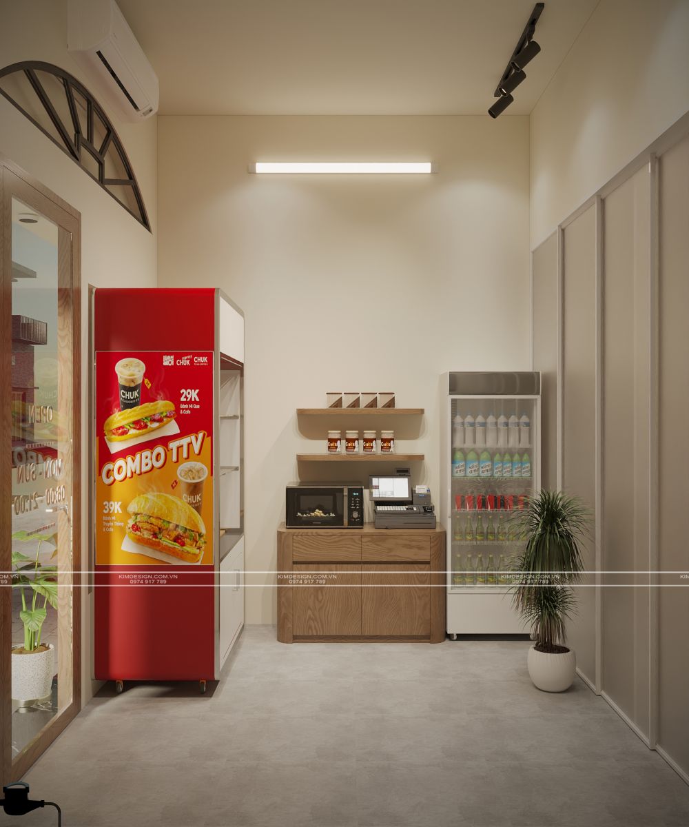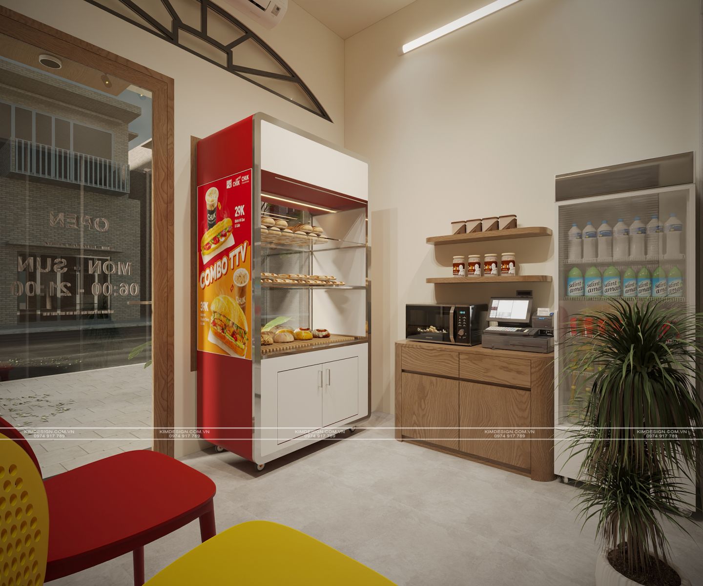 Tất cả các chi tiết đều được tính toán kỹ lưỡng, tạo nên một tổng thể mạch lạc và chuyên nghiệp. Không gian ấy không chỉ đáp ứng tiêu chuẩn vệ sinh thực phẩm mà còn khẳng định giá trị của một thương hiệu chú trọng đến trải nghiệm và cảm xúc của khách hàng qua từng góc nhỏ nội thất. Bạn có muốn sở hữu cho mình một không gian tương tự với chi phí siêu tiết kiệm không, nhắn tin ngay cho Kim Design để được tư vấn miễn phí nhé!