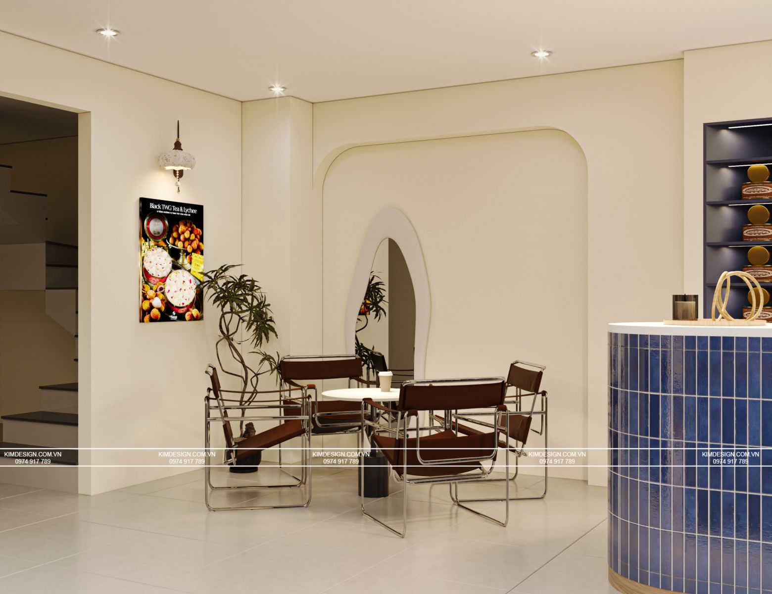 Không chỉ chú trọng đến khu vực trưng bày và mua sắm, tiệm bánh còn tinh tế tận dụng khoảng trống còn lại để thiết kế thêm một khu vực nhỏ làm chỗ ngồi cho thực khách. Với những bộ bàn ghế đơn giản nhưng hiện đại, kết hợp cùng ánh sáng dịu nhẹ và có thể là một vài chậu cây xanh nhỏ, không gian này mang đến một trải nghiệm thưởng thức bánh lý tưởng, nơi khách hàng có thể thư giãn và tận hưởng trọn vẹn hương vị ngọt ngào.